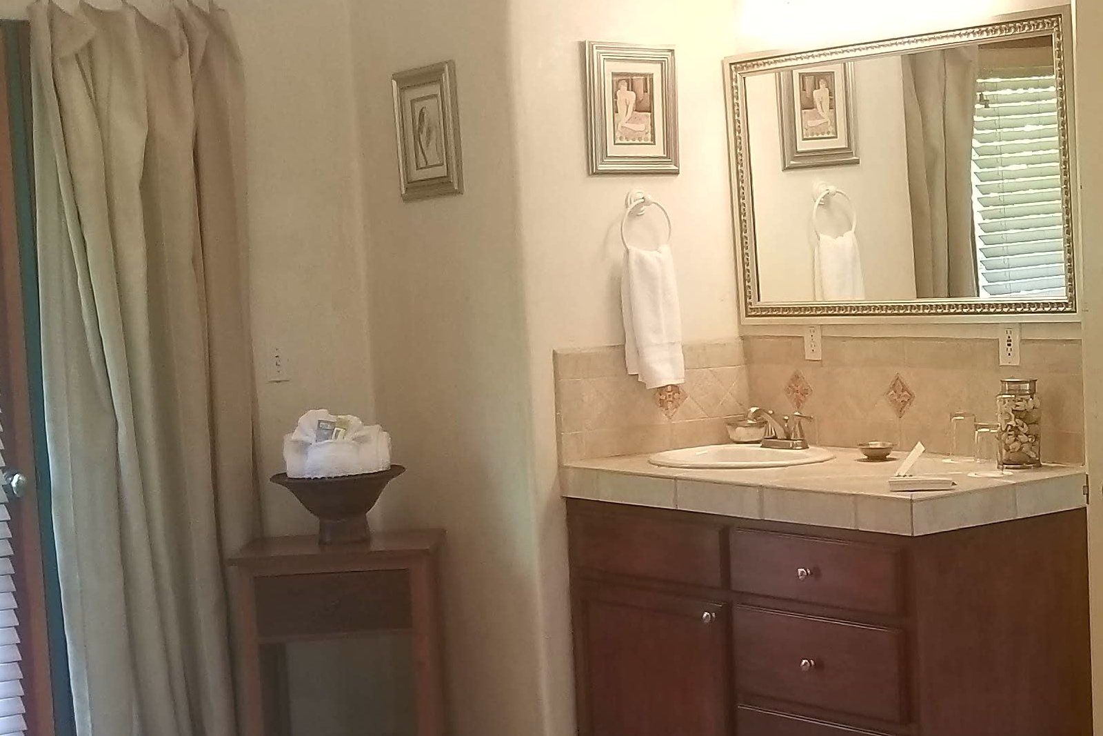 - Private washroom with shower/tub combo, in-room vanity with sink & hair dryer