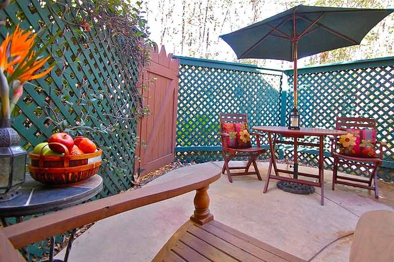 - Downstairs private patio & two balconies upstairs off either side of bedroom