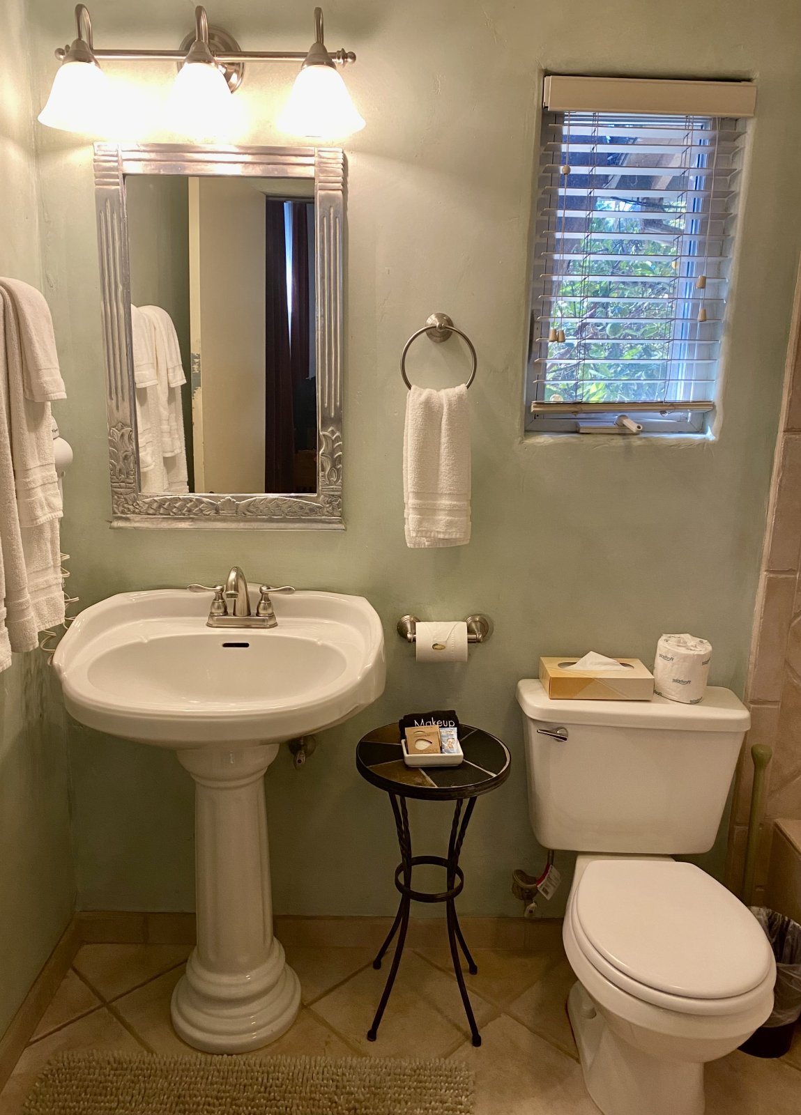 - Downstairs bedroom private bath w/ standing shower & hairdryer and in-room whirlpool tub
